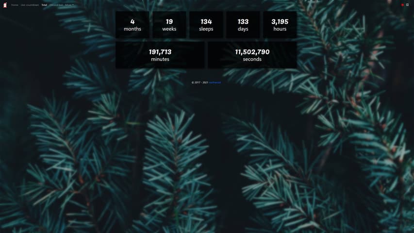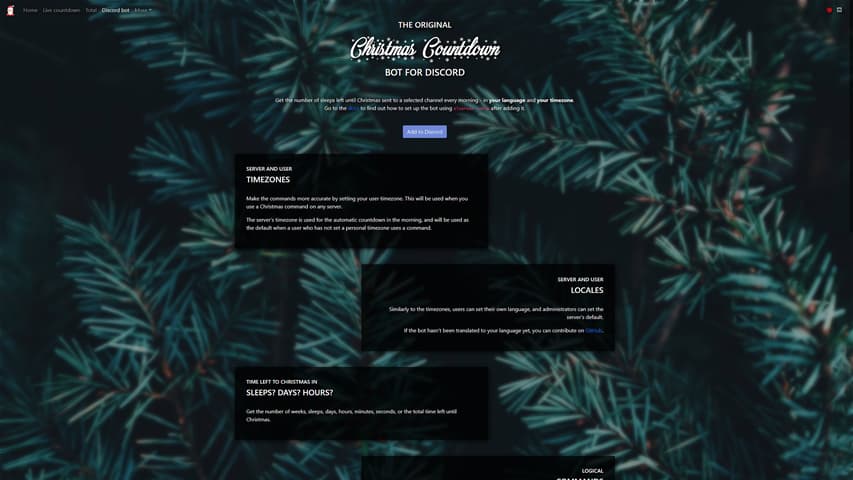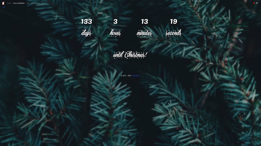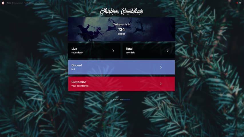 The Christmas Countdown project started in 2017 with a simple single-page website (countdowntoxmas.tk). It was terrible code which was mostly copied and pasted, but it was my first real website and it worked. I made it because I wanted something pretty to put on my 7" Rapsberry Pi touchscreen. The Christmas Countdown website now has thousands of visitors and the Discord bot has been added to over 8000 servers.