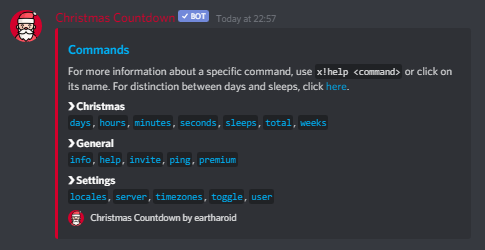 The orginal Christmas Countdown Discord bot was released in November with the Santa hat icon. It was a single JavaScript file. The website got a couple of new pages, which were white text on a dark blue background.